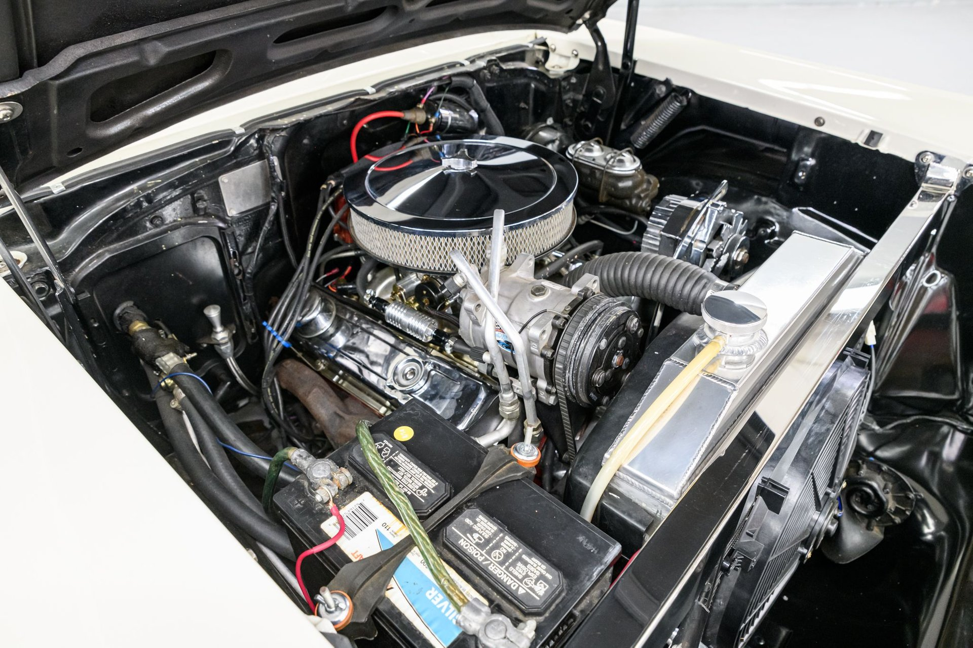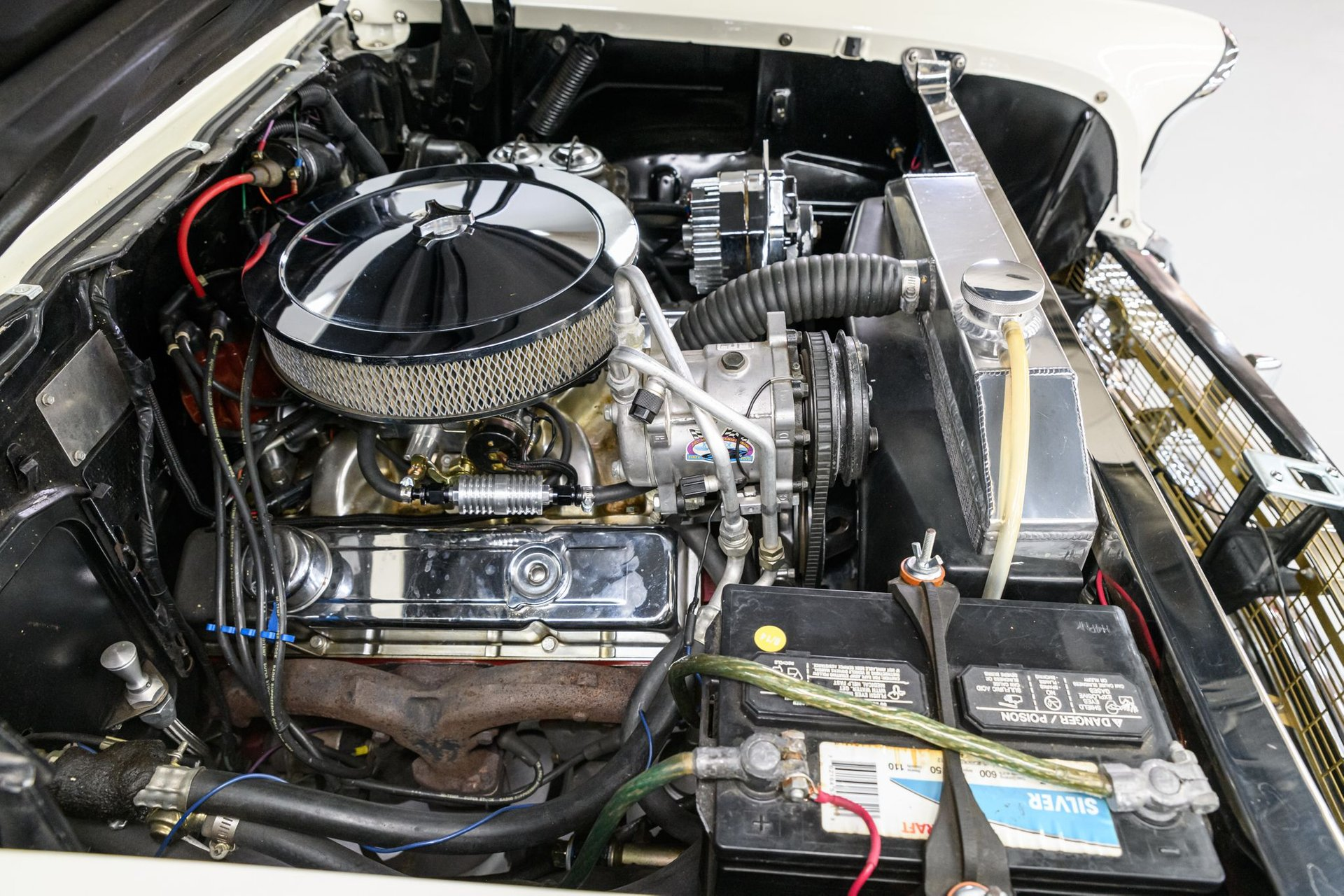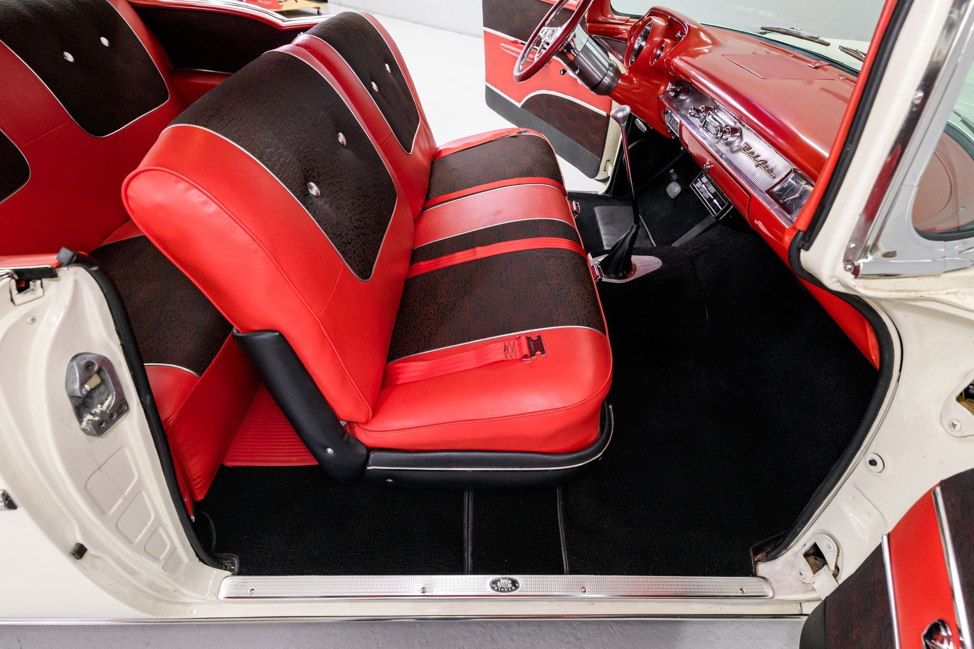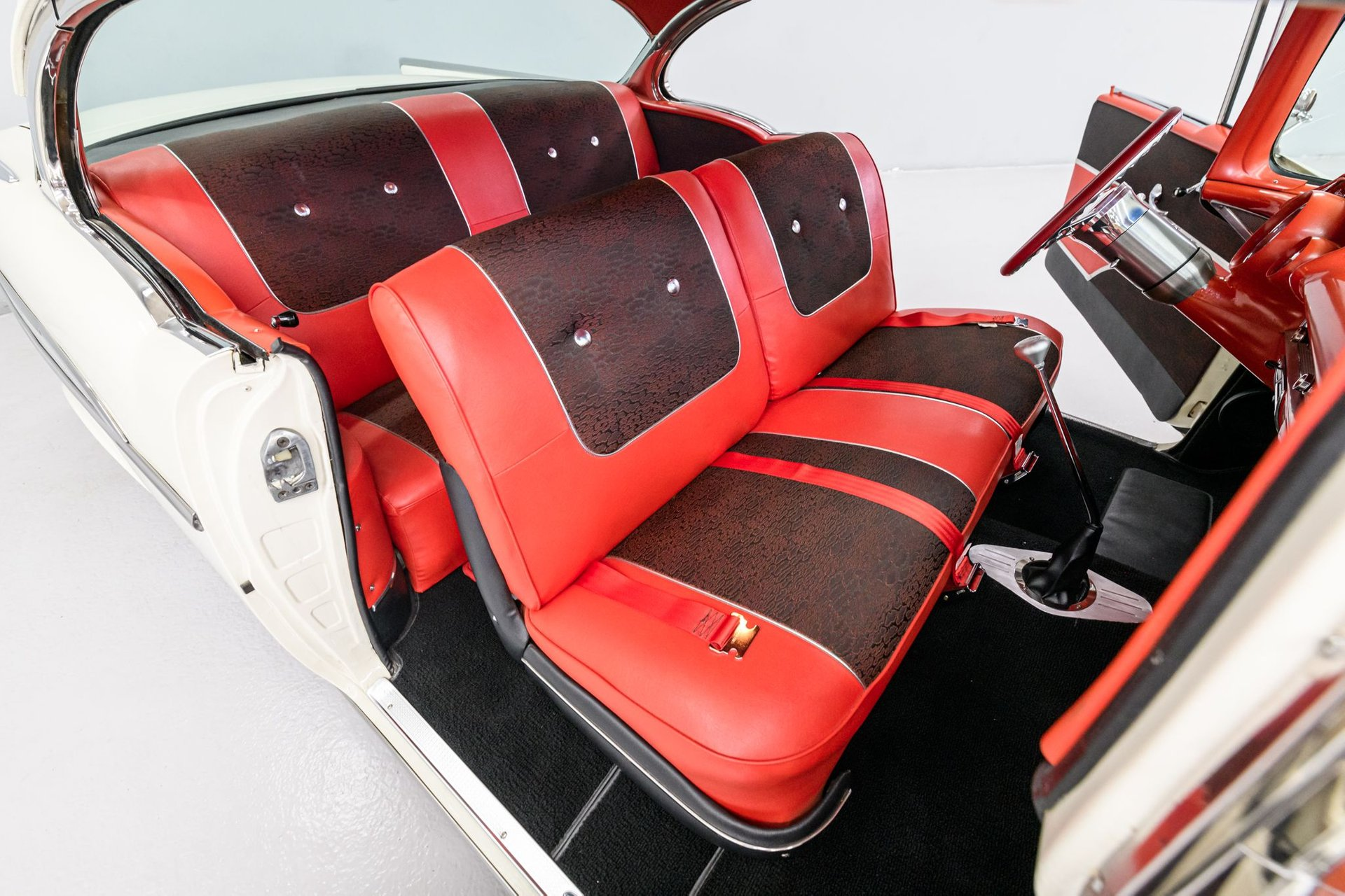 This 1957 Chevy Bel Air is a classic tri-five Chevrolet that was fully restored in 2018. The 2-door hardtop is a perfect example of a Chevrolet icon - strikingly original with strategic upgrades. The 2-stage Cool Vanilla exterior (Chrysler color) was professionally sprayed and is in excellent condition. All deluxe chrome/stainless is in excellent condition. Front bumper guards and Bel Air 'gold accent' trim pieces complete the stunning exterior package. Boss chrome alloy wheels (18x7'f/20x8”r) mount Ironman performance radial tires. The only thing that rivals the exterior is the completely restored red/black interior. Every detail has been addressed. Door cards, dash, headliner – everything is outstanding. The factory gauge cluster has been replaced with a Dakota Digital analog gauge package and a tilt wheel assembly mounts a custom alloy wheel. Sounds are provided by an aftermarket AM/FM/Cassette stereo system. Upgraded two-speed electric wipers have also been fitted.