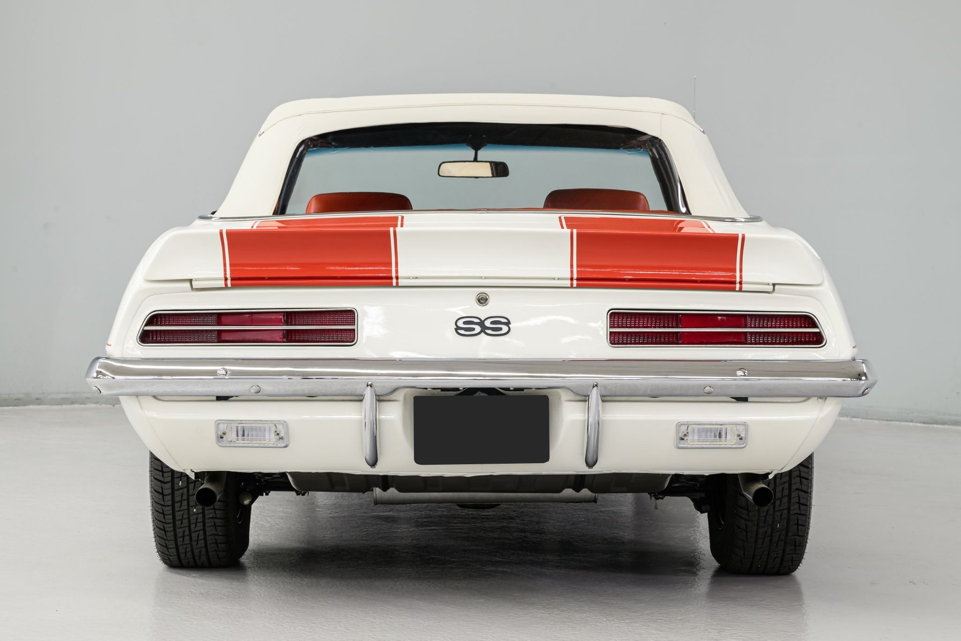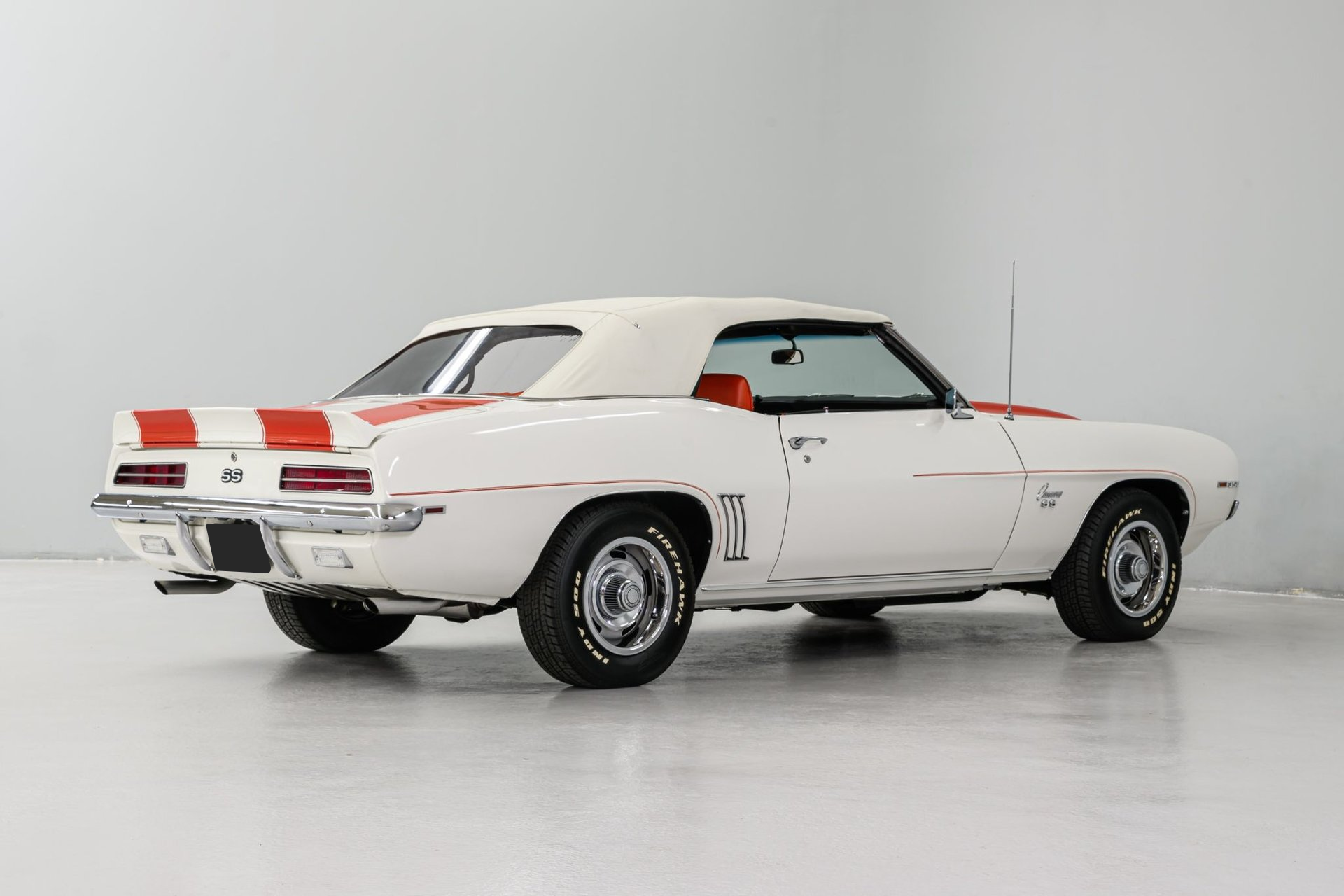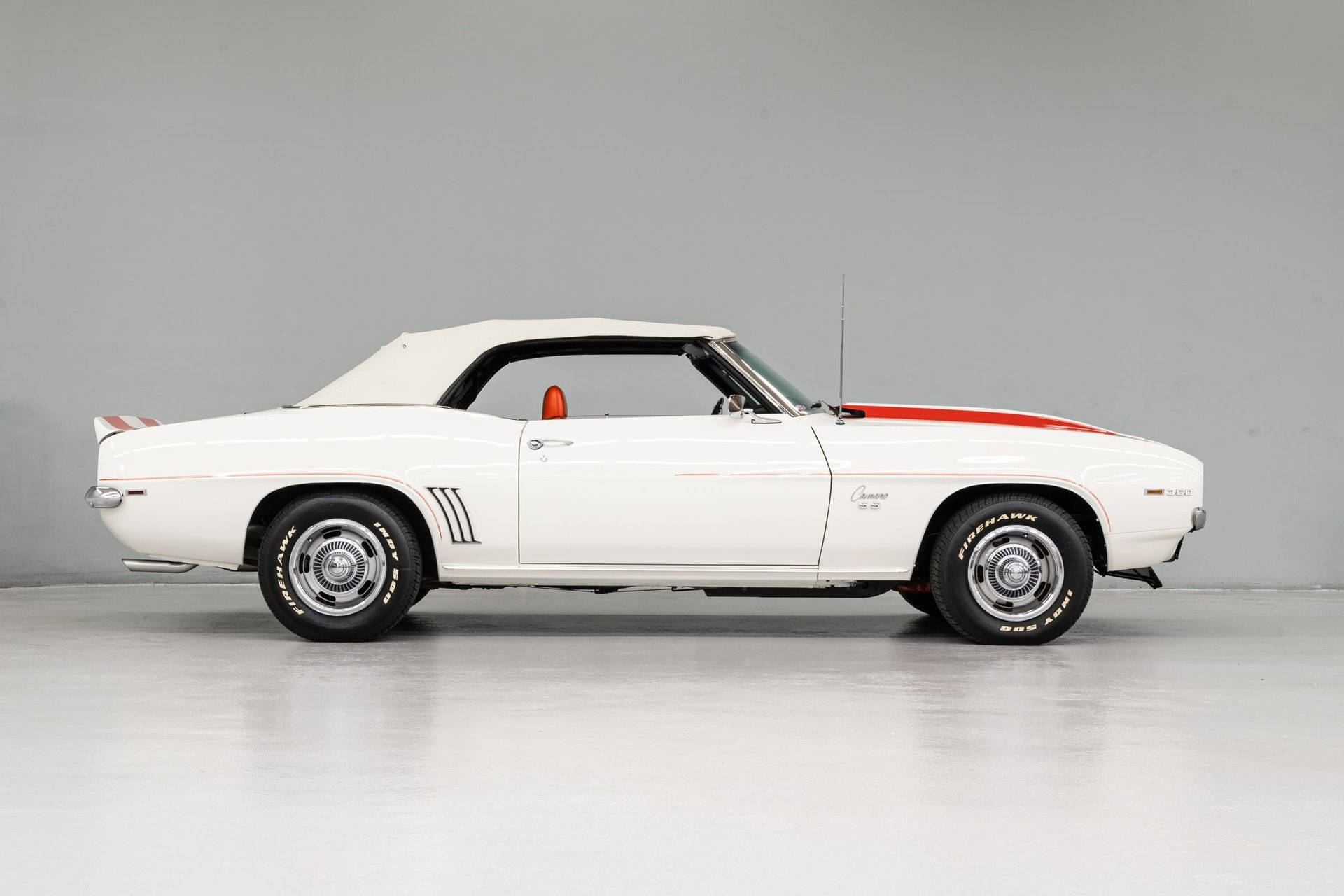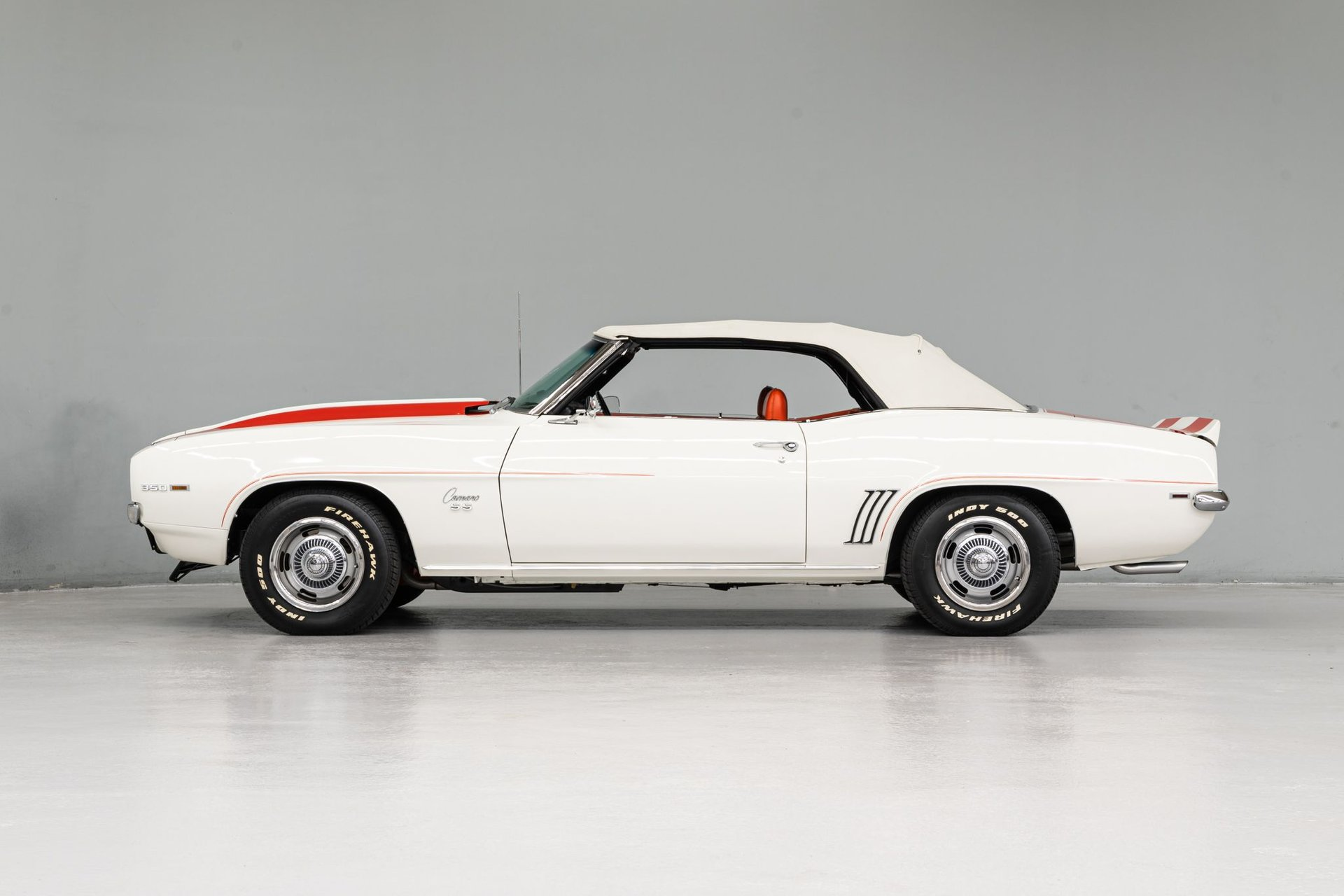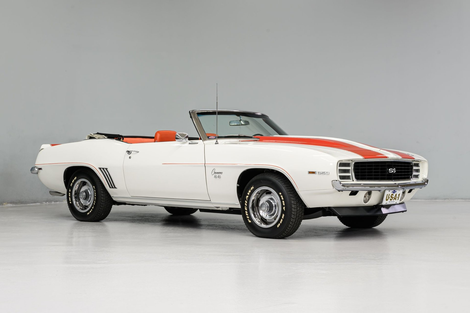 Introduced in 1967, the Camaro was an instant success story, one that continues to this day. The current version of the Camaro takes many of its styling cues from that Gen 1 car. The Camaro was named as the official Pace Car for the 1969 Indianapolis 500. Chevrolet designed a beautiful White/Orange Camaro RS/SS convertible to meet the challenge. They then produced a limited number (said to be 3,675) of the 'Indy 500 Pace Car' models for sale to the public. These cars used stock Camaro performance drivetrain components, but had unique styling options. This fully restored '69 Camaro RS/SS convertible is one of these original tribute 'Indy 500 Pace Cars'. The data plate on the firewall has all of the correct codes unique to the factory 'Indy Sport Accents' package (code Z11). Mileage on the odometer (75,200) is believed to be actual. The rotisserie restoration was completed in 2009 and it is truly exceptional. An extensive binder of photos and documentation is included along with Delivery documents and Owners Manual. There is even an official '1969 Indianapolis 500 Event Program'.