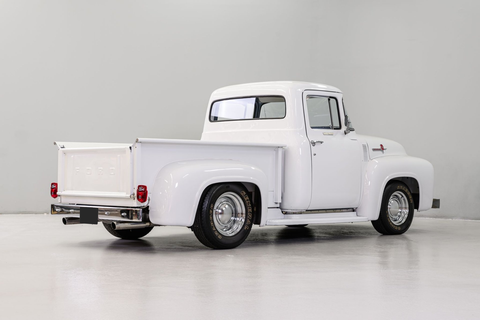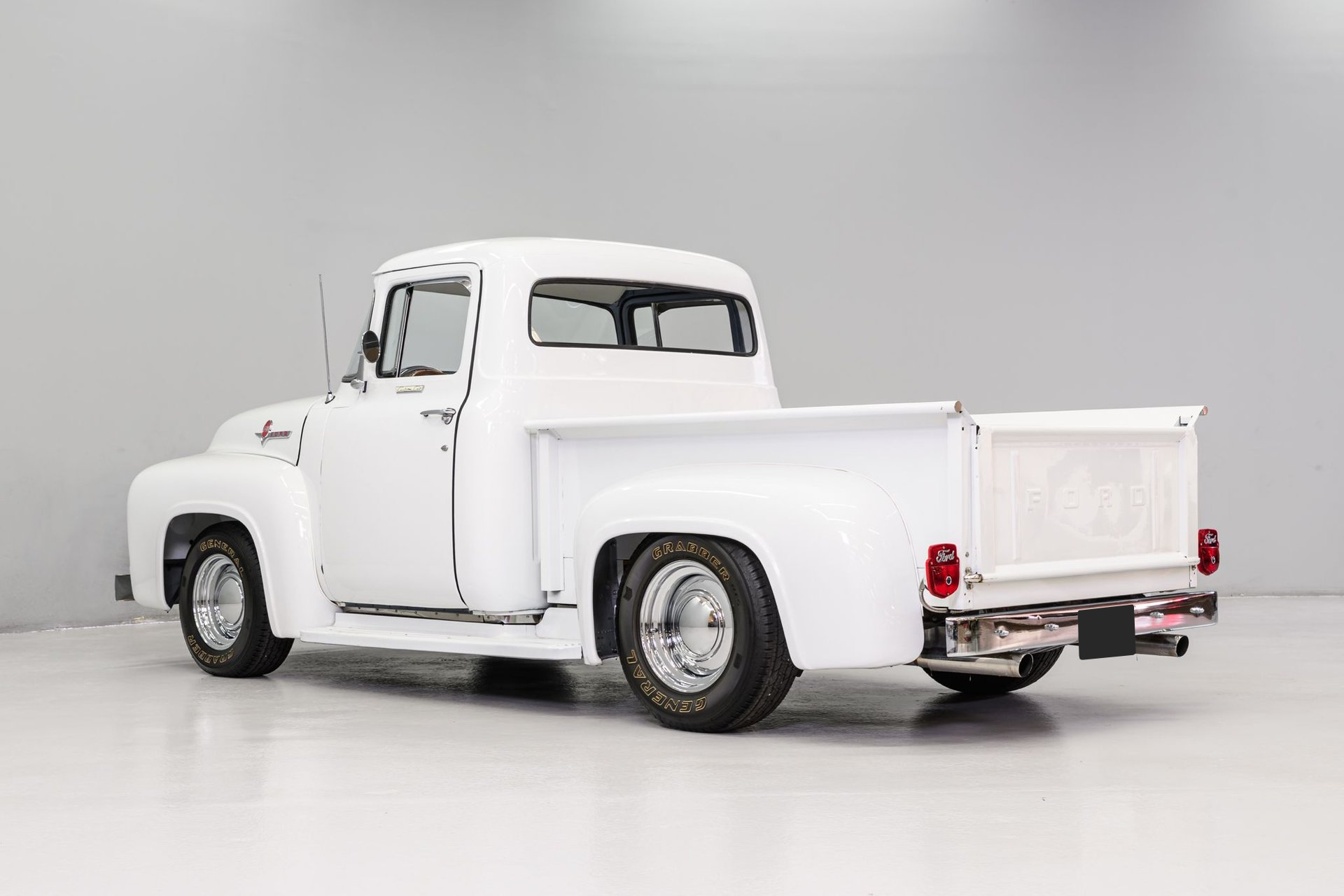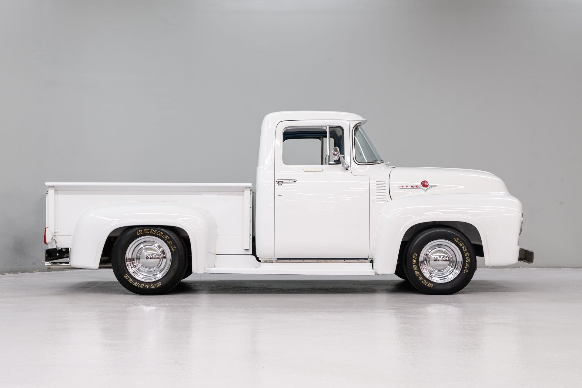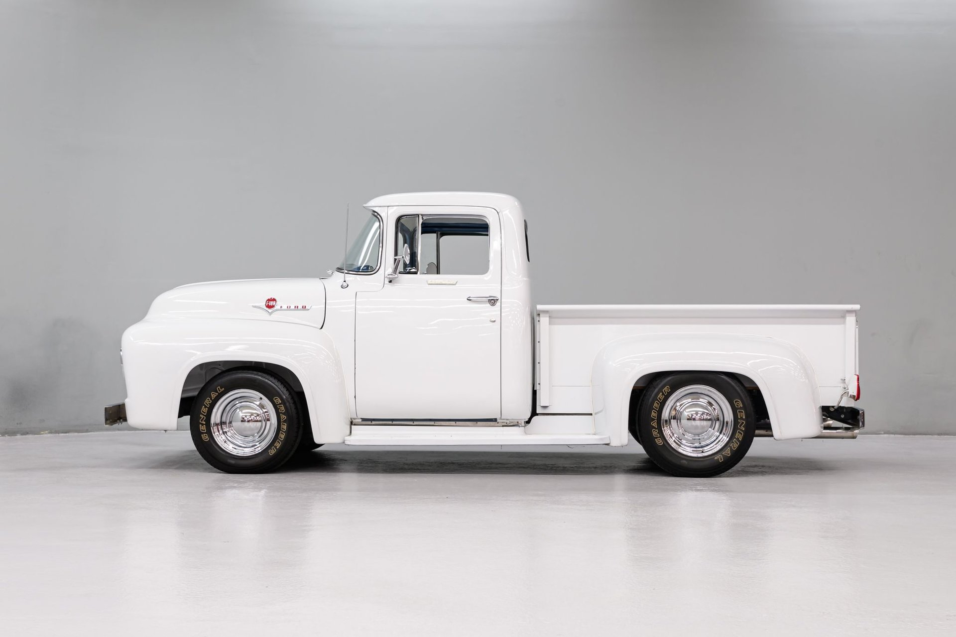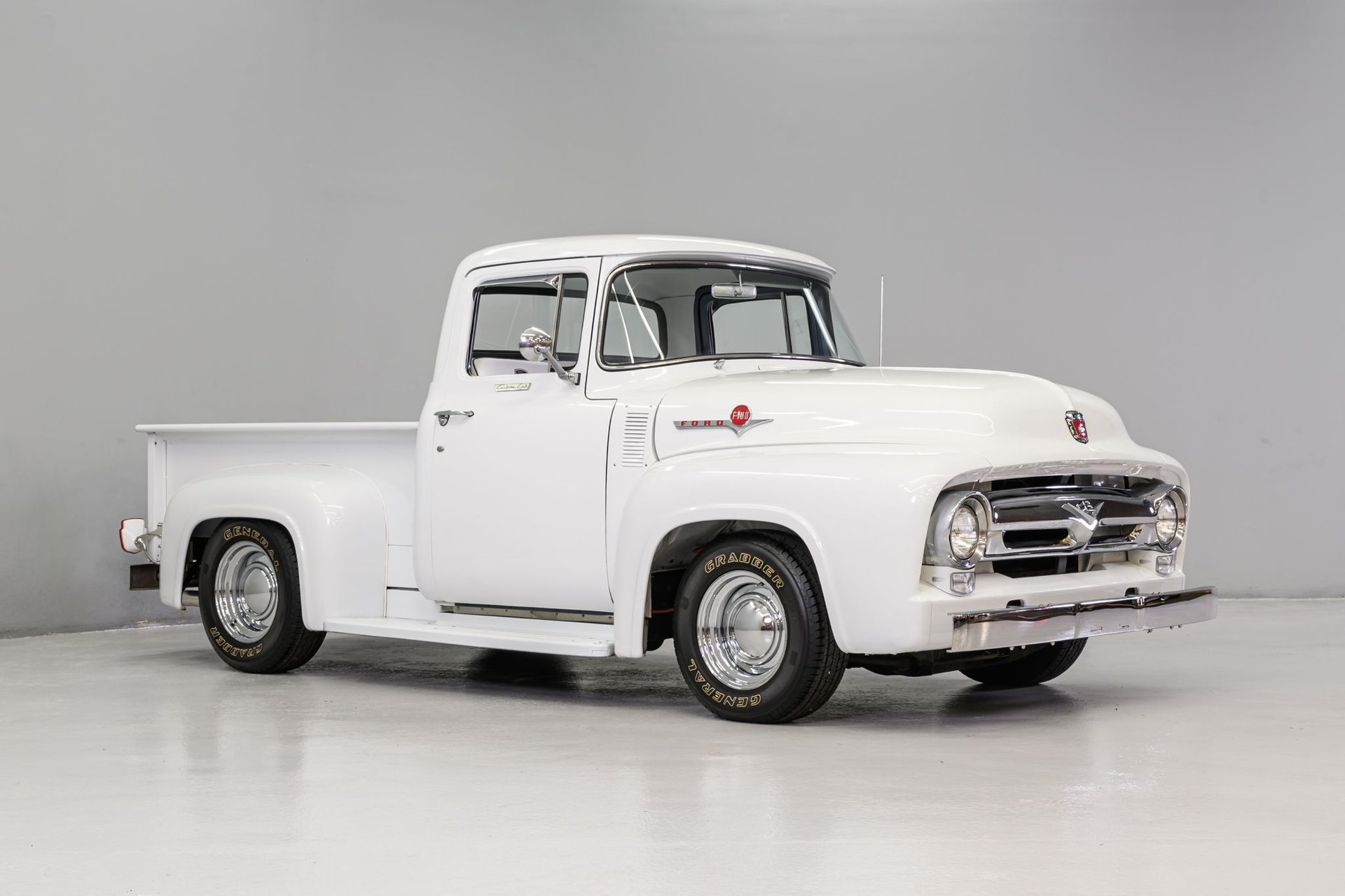 The Second Gen Ford F-100 model was only offered from '53 to '56. Today, it has a following. This classic 1956 F-100 Custom Cab has been with its current owner for over 22 years and has benefited from a full restoration (2015) with serious mechanical upgrades. The exterior received a 2-stage respray of White (2012 Dodge color) and it is in very good condition. Chrome is excellent and a beautiful cherry wood floor w/stainless trim has been installed in the bed. The roomy interior is also in good condition. Power assisted (6-way) split bench seats have been carefully reupholstered in rolled/pleated white vinyl w/Ford logos. There is a nice seat console, custom spoke wheel on a tilt column and a complete set of VDO gauges in a custom dash. Horsepower comes from a Jasper 351ci Windsor motor that was built by the folks at Jack Roush Racing. It is equipped with an Edelbrock Torker intake, Edelbrock 4V carb and serious street cam. Exhaust is routed through tube headers and cooling is provided by a heavy-duty radiator w/electric fan. The transmission is a Ford 4-speed/OD automatic and a Ford 9” differential houses street gearing. Power steering and power assisted front disc/rear drum brakes have been installed. Front and rear suspensions are leaf springs and air shocks have also been fitted in the rear. Chromed 15” steel wheels w/caps mount BFG Radials. Why not have some fun in this rare custom classic?