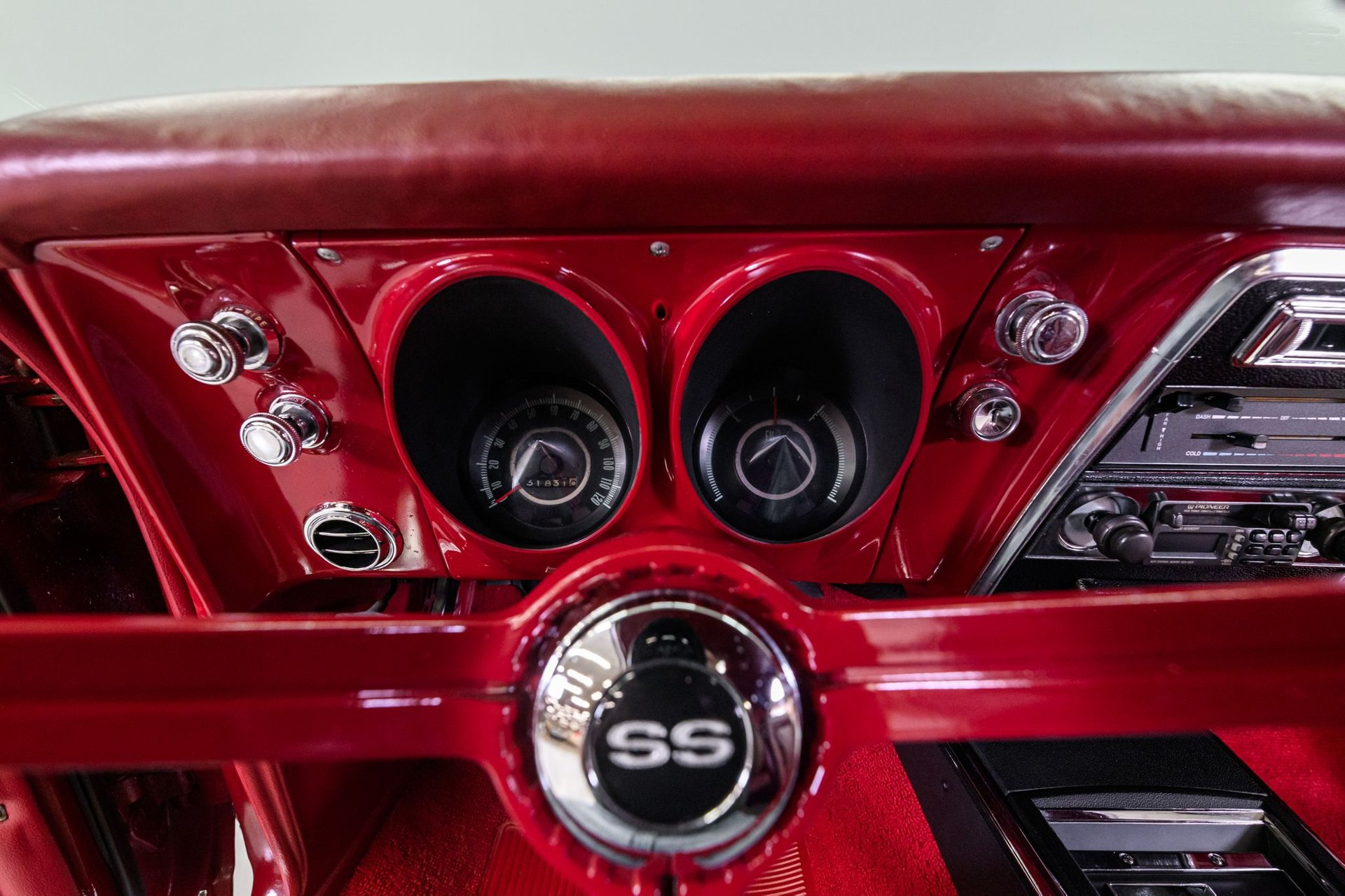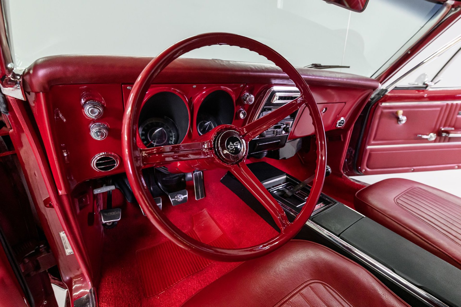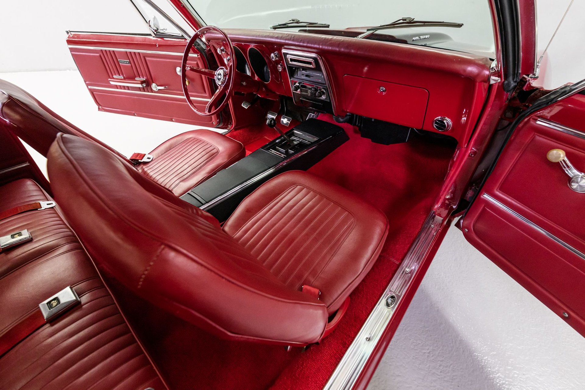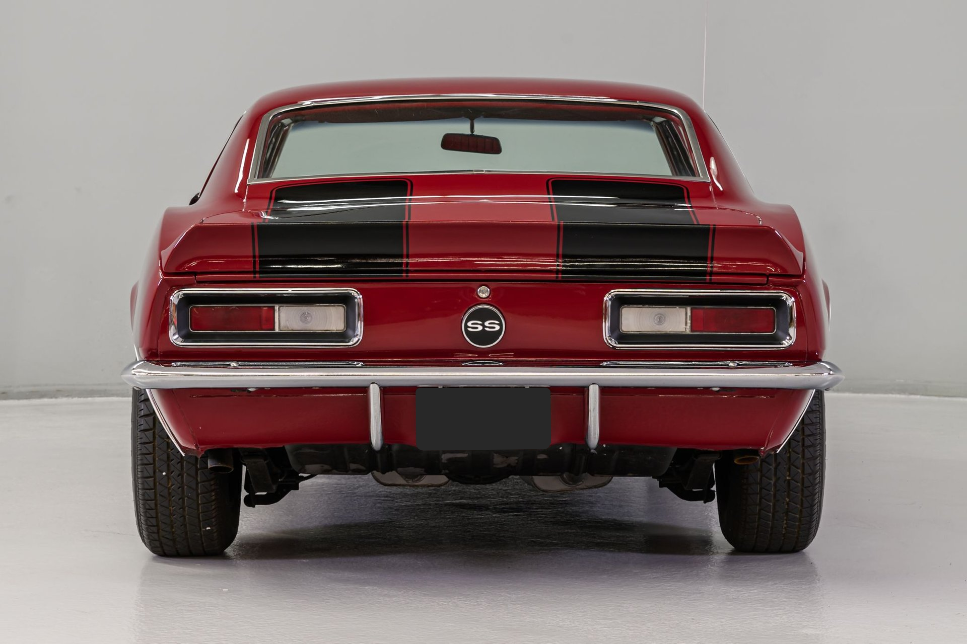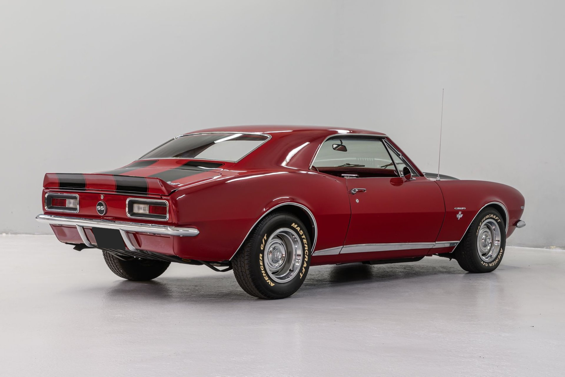 The Chevy Camaro was an instant success when introduced in 1967 and our fully restored (2015) coupe is a stunning example of this special GM lore. The current owner believes that the Camaro was an SS model from the factory, but we cannot document for sure. The Camaro was manufactured in October 1966 at the Norwood Ohio plant and they did not put any 'SS' designation on their trim tag until later in the '67 production cycle. Whether it is a factory SS or not, it is beautiful Camaro with SS performance. Originally a Bolero Red car, it has been professionally refinished in a Deep Burgundy with Black 'Z-28' accent stripes, cowl induction hood and rear spoiler. GM Rally wheels mount white letter performance radials. Our Camaro looks great from any angle – check the photos again. The restored red vinyl interior looks every bit as good as the original. Options and features include: Sanden A/C, center console, Muncie shifter, tinted windows and Pioneer AM/FM/Cassette sound system. Horsepower is said to come from a rebuilt 327ci small-block. It has been dressed-up and fitted with an Edelbrock aluminum intake/carburetor and mild street cam. Torque is delivered through a 4-speed manual transmission to a 10-bolt rear differential. The chassis is fitted with power steering and power disc/drum brakes w/dual master. This distinctive Camaro is a Bowtie icon that will only become more valuable over time. It is a solid investment and a special driving experience.