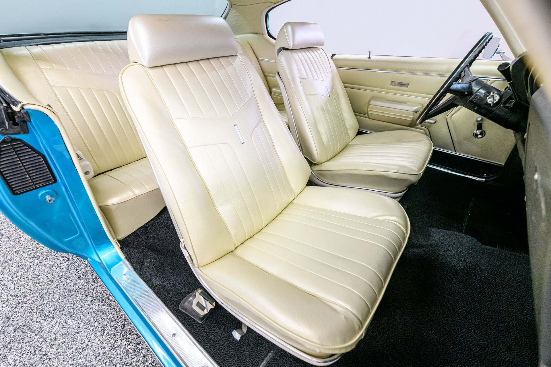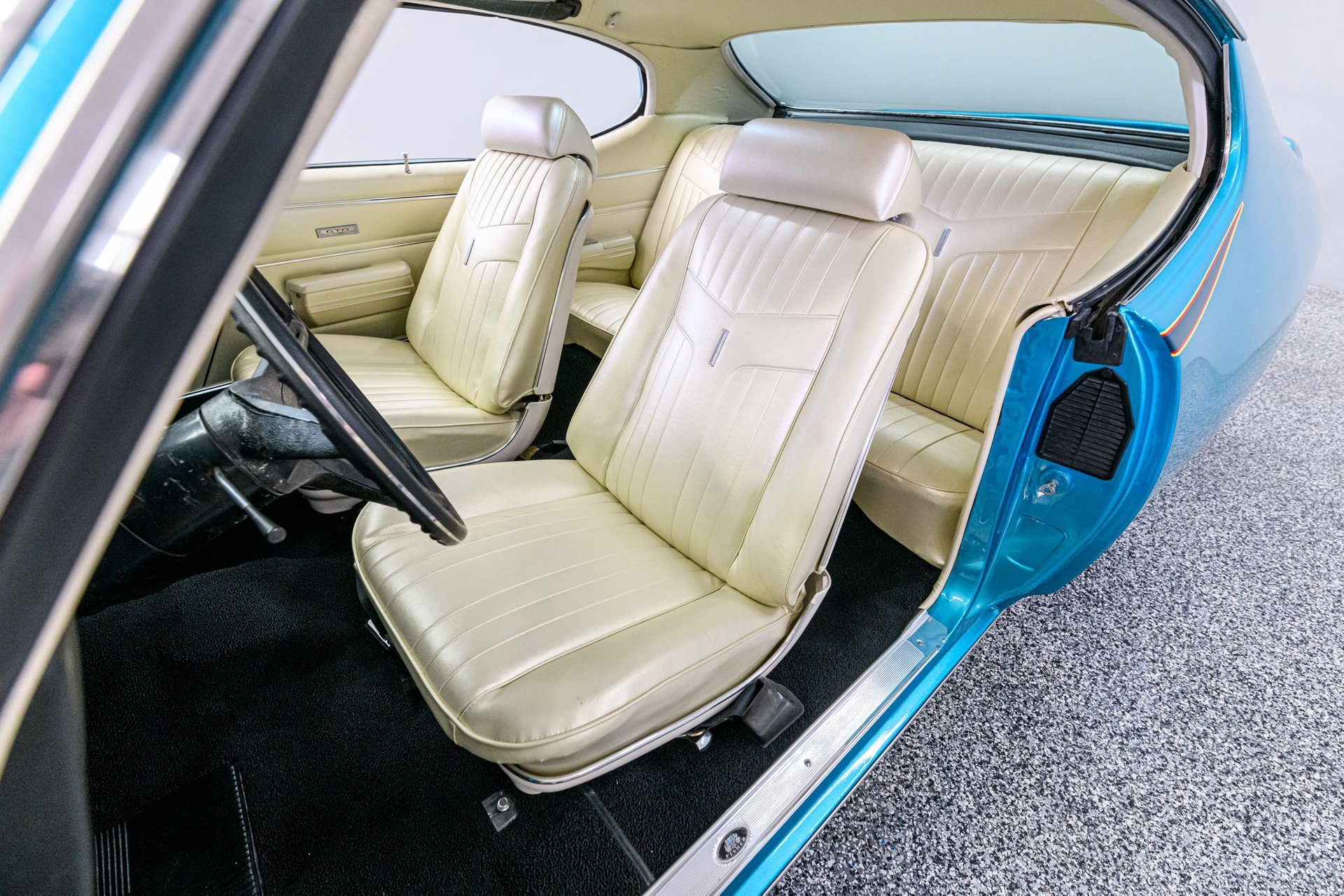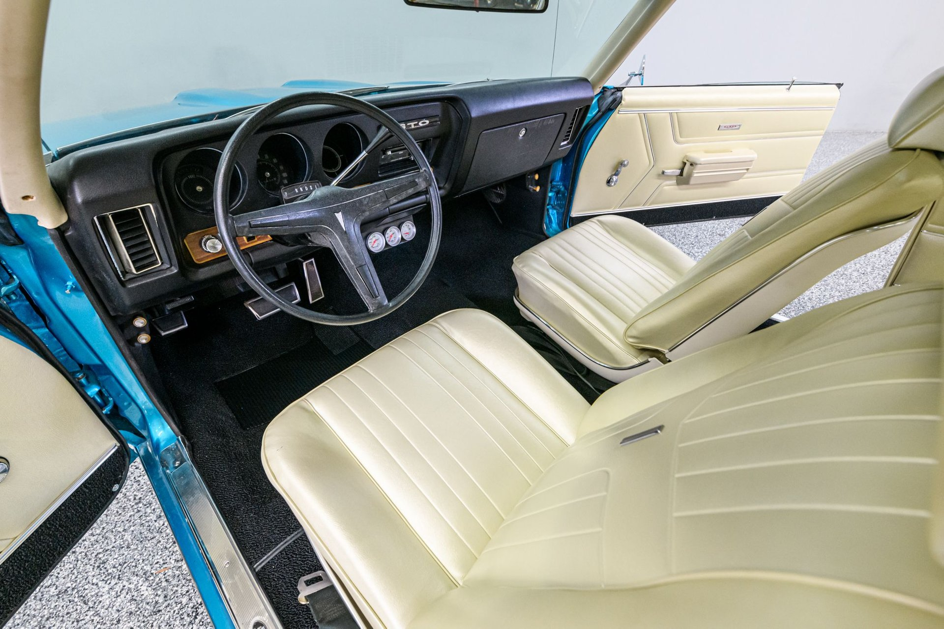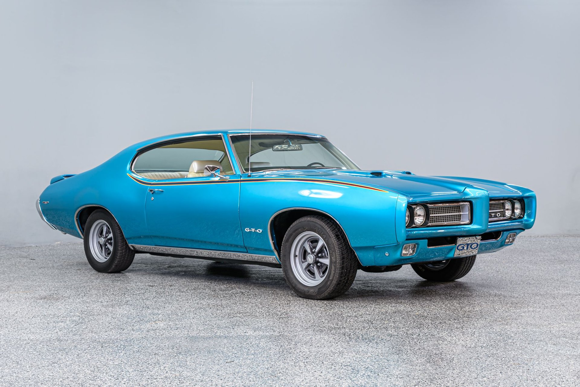 The GTO remains one of the most popular muscle cars of all time. Pontiac introduced the concept in 1964 and we thank them for it. Pontiac based the second gen GTO on the mid-size Lemans chassis and then added a potent V-8, suspension upgrades and GTO body visual enhancements. The second-gen GTO was somewhat larger than the original, but a much better all-around car. According to the VIN, this 1969 hardtop is a '42 code' factory GTO. The current owner performed a full restoration over the past 4 years and a furnished binder provides a comprehensive record of the restoration. (It also includes copies of the original window sticker and factory production build sheet.) The Crystal Turquoise Poly (original color/code 55) 2-stage paint was professionally applied. There are three base coats w/pearl and multiple coats of clear. Exterior enhancements include accent strips, dual hood scoops, a rear-deck spoiler, 'GTO' trim and Pontiac Rally II wheels w/Cooper Cobra radials. The Parchment vinyl bucket seat interior has been fully restored back-to-original (2018) and is in very good condition. The factory gauge package in this GTO was very basic - analog gauges and tachometer were optional in '69 - and a set of iEquus gauges have been added. All window glass is factory 'Soft Ray' tinted and a Kraco AM/FM/cassette stereo system plays your tunes. Under the hood is a rebuilt (2017) Pontiac 400cid motor factory rated at 350hp and 455 lb/ft. It appears to have been built to stock specs and sounds just like it should. The 400 is fitted with an Edelbrock 4V carb, an aluminum radiator and is backed by a 3-speed Turbo HydraMatic transmission. The chassis is equipped with power steering and manual drum brakes. The current owner is ready to pass this beautiful Goat on to the next lucky caretaker. If you purchase this authentic '42 code' GTO you will not go wrong.